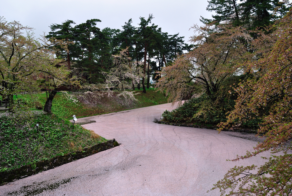 Le parc bordé de sakura (桜), aux pelouses bien vertes dues au climat du nord de Honshu (本州).